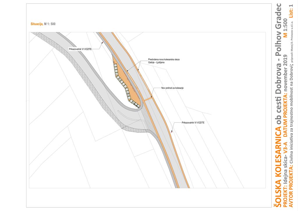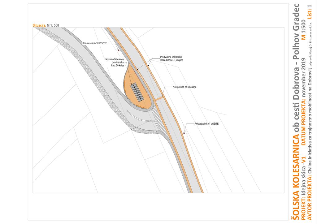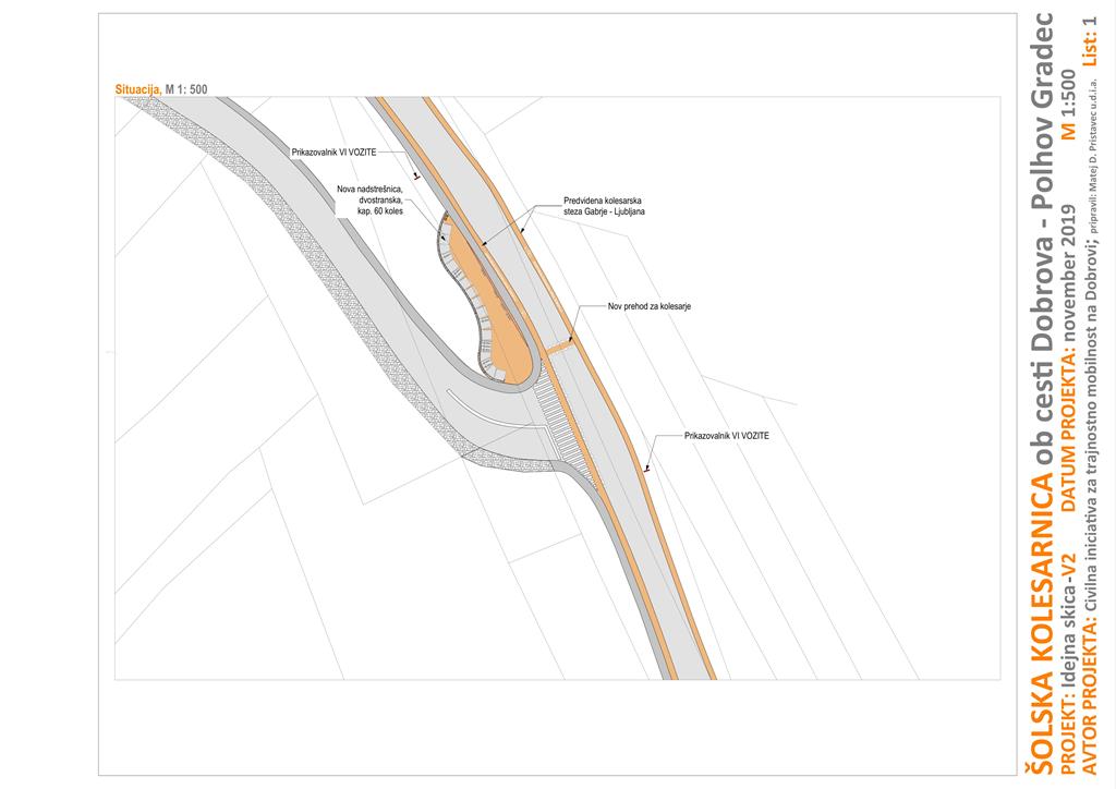 Predlog je bil s strani odbora Civilne iniciative predstavljen g. županu in Občinski upravi Občine Dobrova – Polhov Gradec, dne 16.12.2019. Predlog je kasneje Občinska uprava posredovala v preveritev projektantom Barjanske regionalno kolesarsko povezave, ki bodo preverili ustreznost predlagane umestitve kolesarnice v projekt Barjanskega kolesarskega omrežja.
